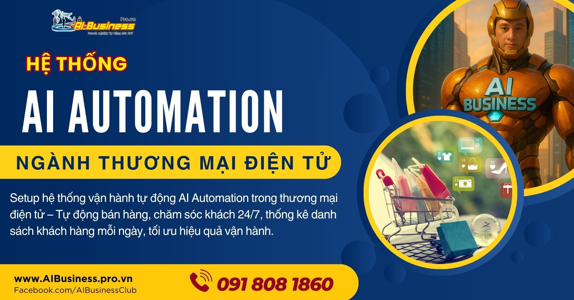 Setup hệ thống vận hành tự động AI Automation trong thương mại điện tử – Tự động bán hàng, chăm sóc khách 24/7, thống kê danh sách khách hàng mỗi ngày, tối ưu hiệu quả vận hành.