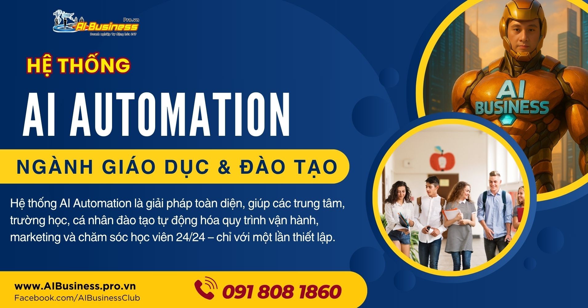 Hệ thống AI Automation là giải pháp toàn diện, giúp các trung tâm, trường học, cá nhân đào tạo tự động hóa quy trình vận hành, marketing và chăm sóc học viên 24/24 – chỉ với một lần thiết lập.