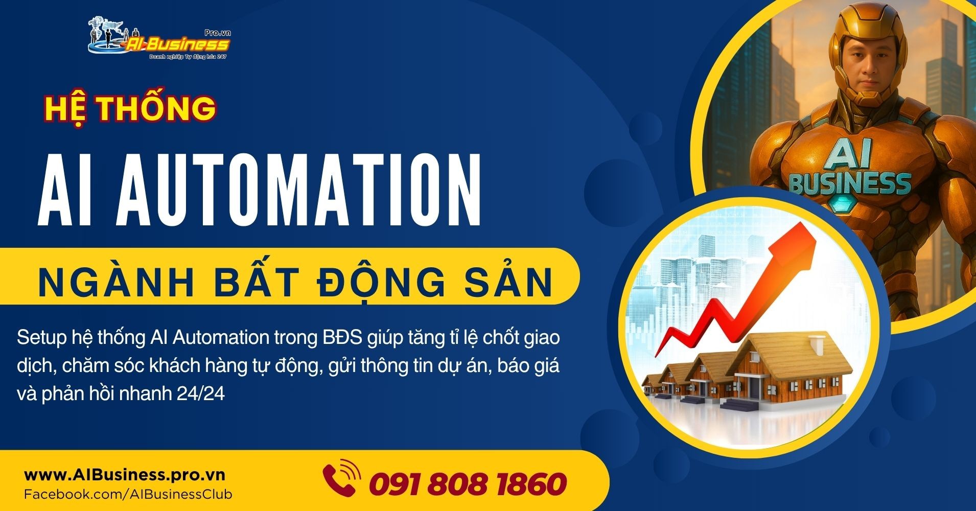 Setup hệ thống AI Automation trong BĐS giúp tăng tỉ lệ chốt giao dịch, chăm sóc khách hàng tự động, gửi thông tin dự án, báo giá và phản hồi nhanh 24/24