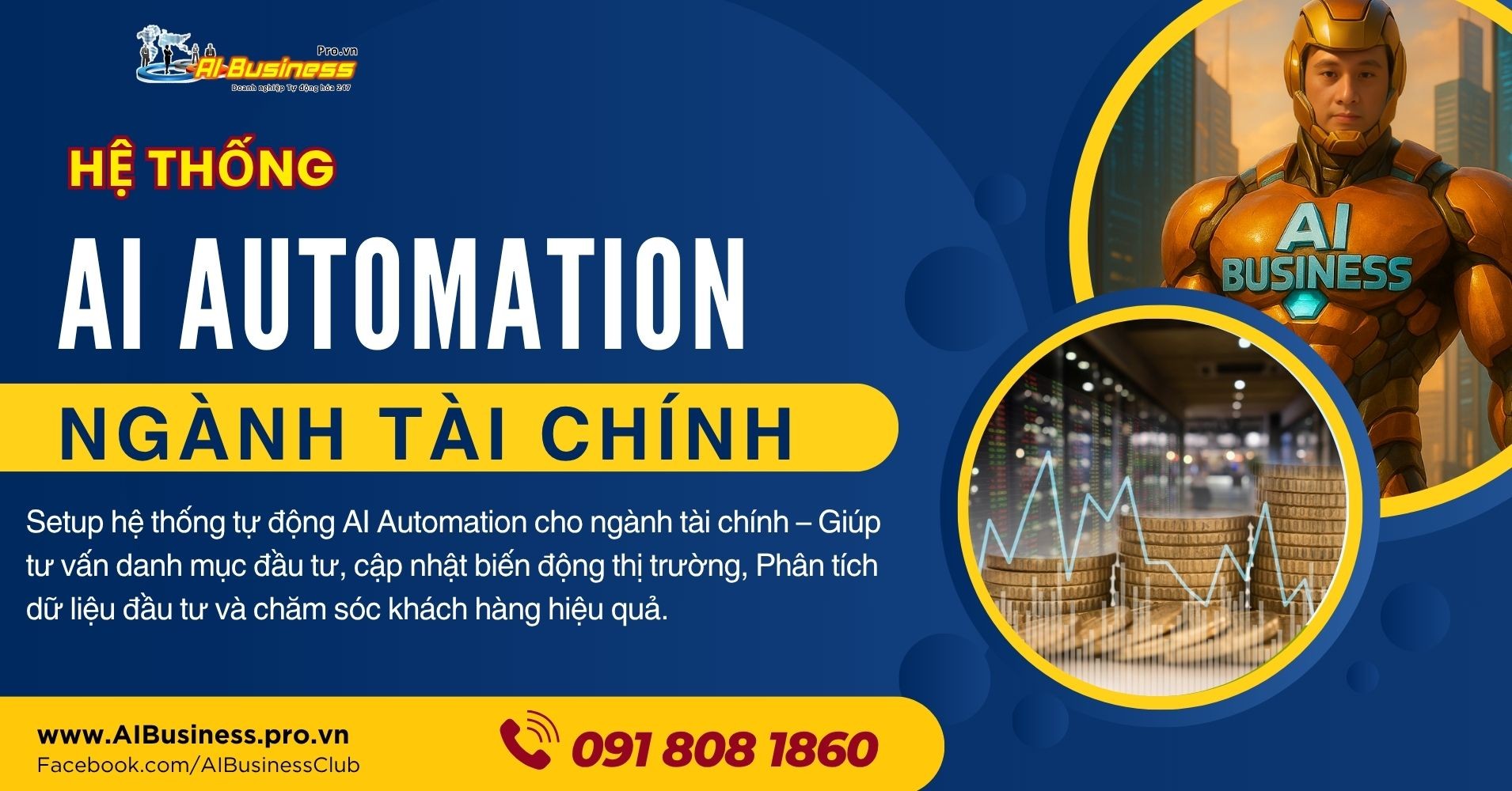 Setup hệ thống tự động AI Automation cho ngành tài chính – Giúp tư vấn danh mục đầu tư, cập nhật biến động thị trường, Phân tích dữ liệu đầu tư và chăm sóc khách hàng hiệu quả.